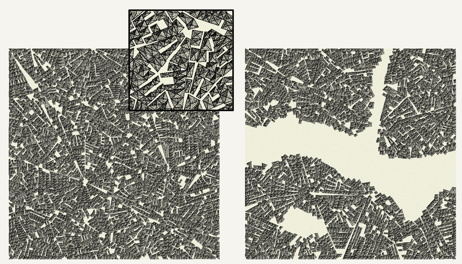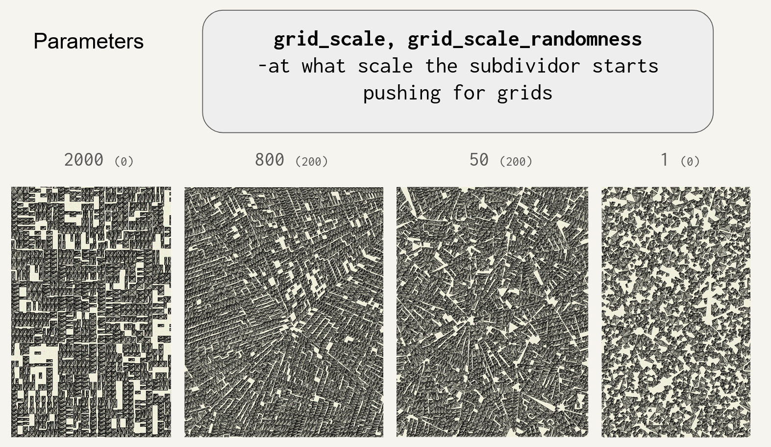 A fully parametrized texture sysnthesis system for creating background map textures. Uses a custom subdivision tree, graph pathfinding with real-world inspired heuristics, and a sampling system to apply hand-drawn textures according to roof normals and directional lighting.