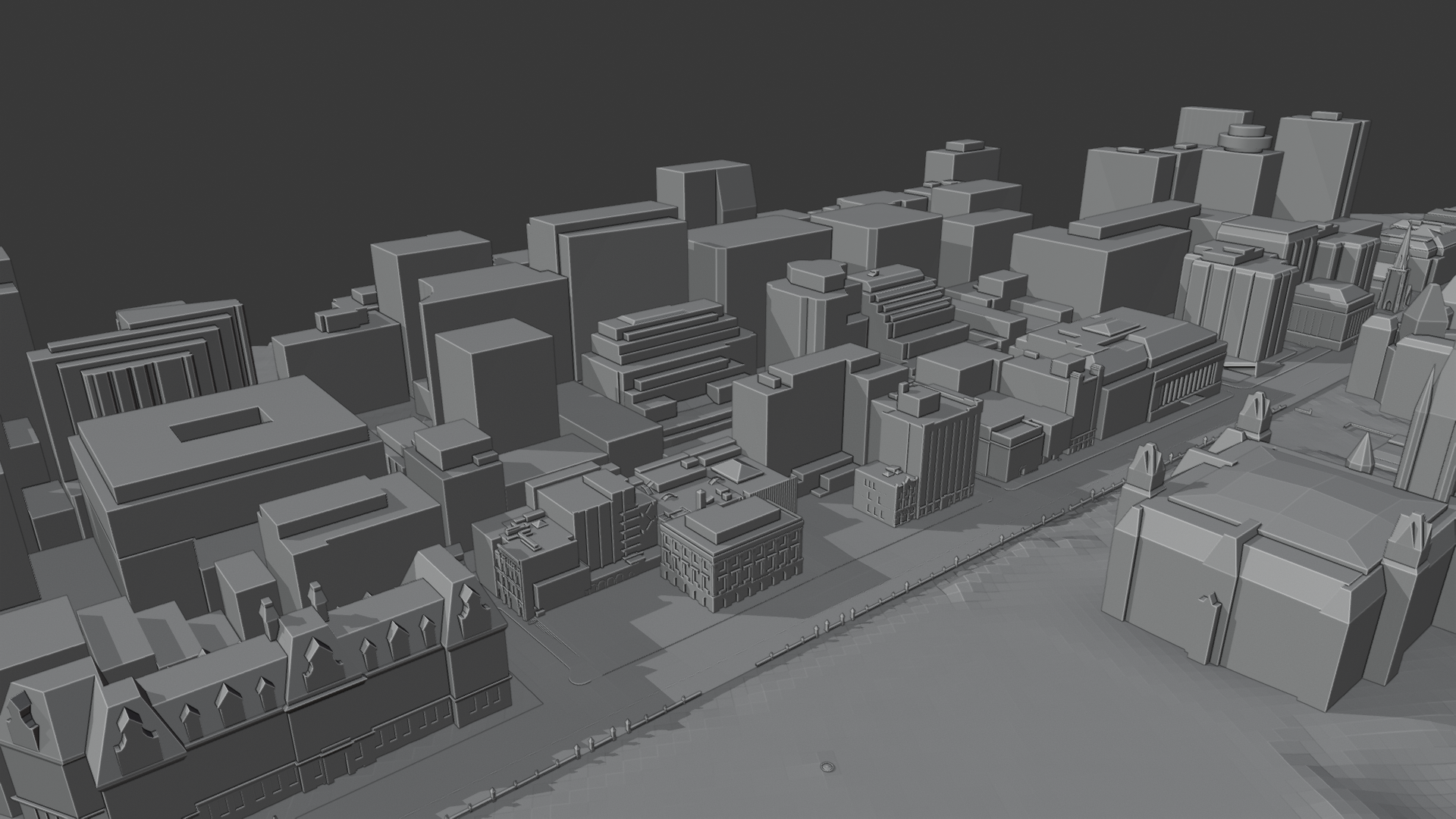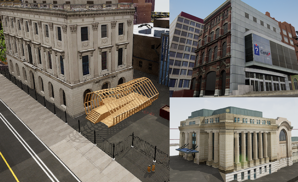 I worked with the House of Commons for several years to develop a 1:1 recreation of Ottawa's downtown core in Unreal Engine. I worked on model and texture development for buildings and environment dressings, custom interactive systems for weather and traffic simulation, as well as extensive work on profiling and optimization.