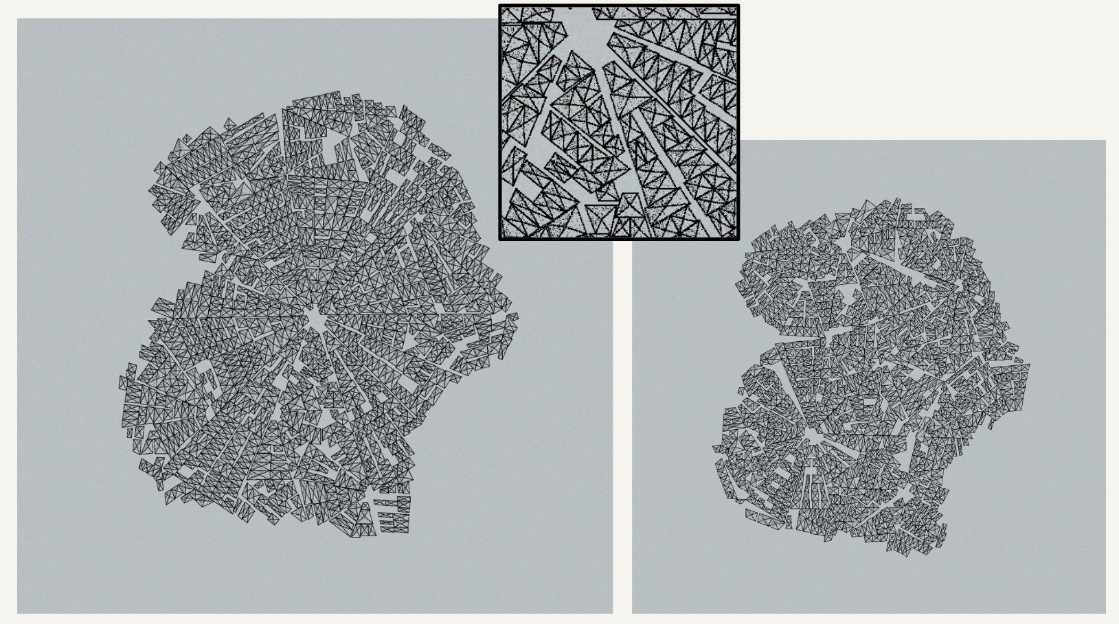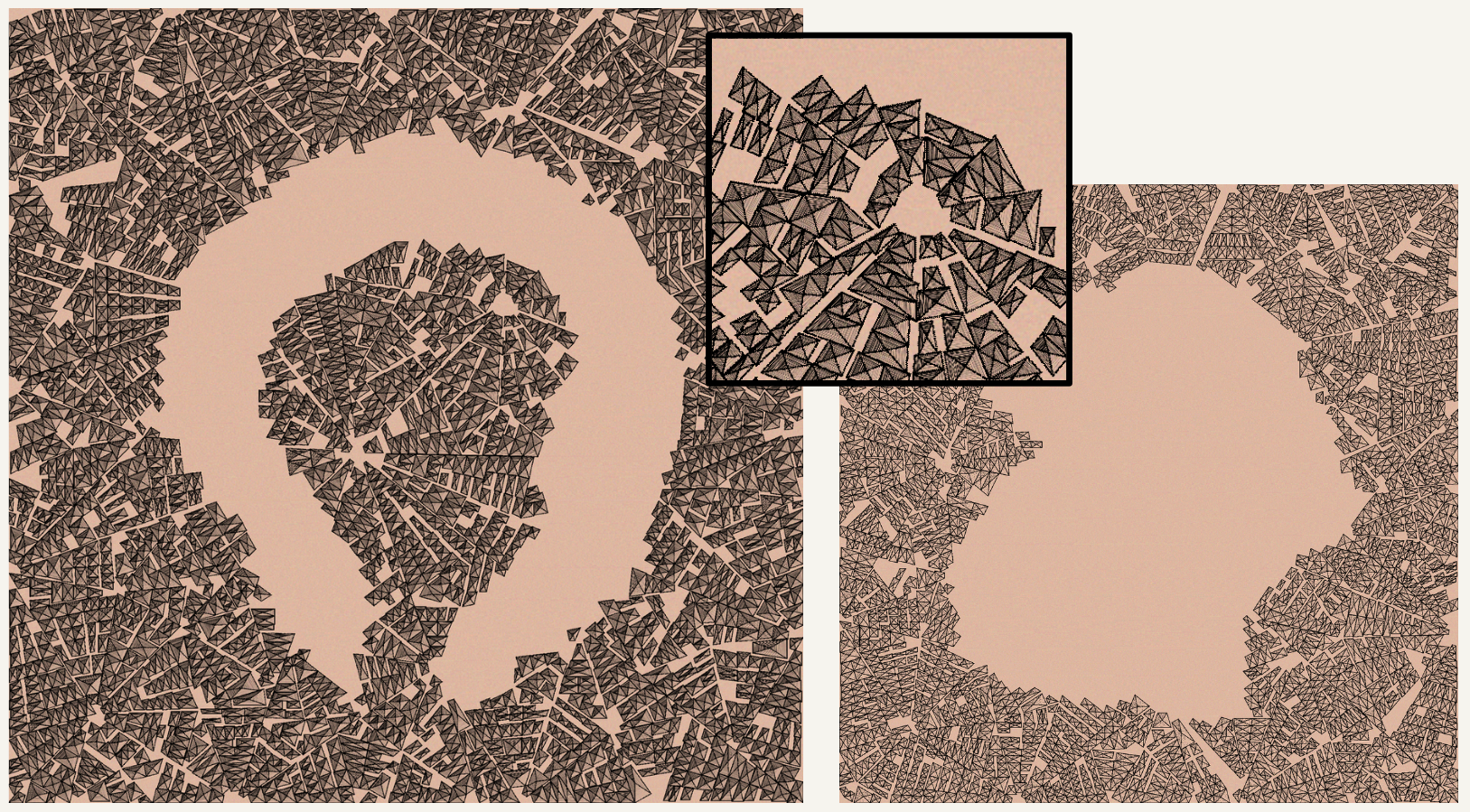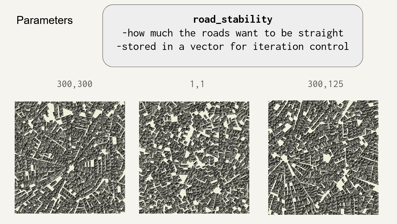 A fully parametrized texture sysnthesis system for creating background map textures. Uses a custom subdivision tree, graph pathfinding with real-world inspired heuristics, and a sampling system to apply hand-drawn textures according to roof normals and directional lighting.